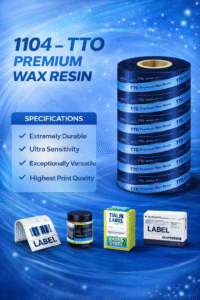 1104 is the newest wax/resin ribbon for TTO, Near Edge and Corner Edge printers. It is dedicated to print rough label materials like uncoated papers or tags, a challenge for TT ribbons.